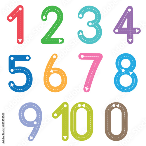 (Element) set of ten numbers form zero to nine, number flat design