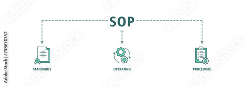 Standard Operating Procedure - SOP business concept. Instructions to assist employee in complex routine operations. SOP web banner with icons vector illustration infographic flat design.