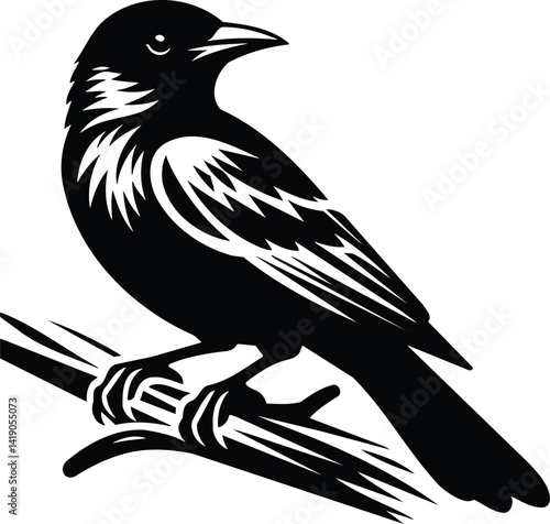 Oriole Silhouette Perched on Branch Vector Illustration