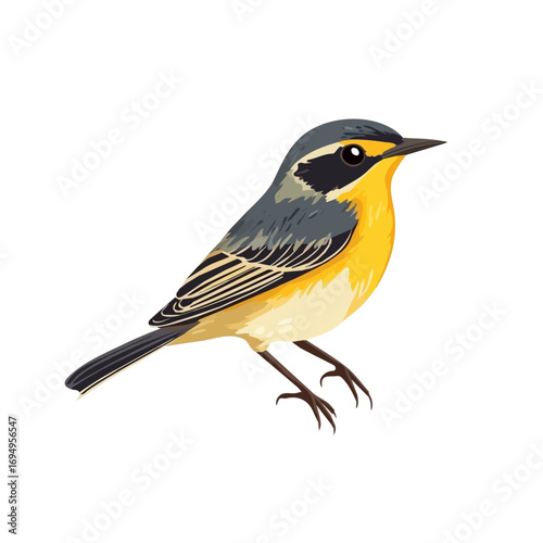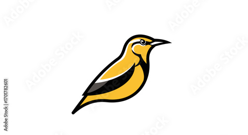 Vector art of a stylized illustration of a bright yellow oriole bird with black white