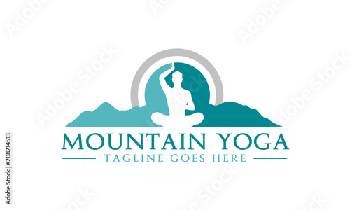 yoga for body and soul meditating person silhouette by the lake with mountain landscape vector illustration EPS10
