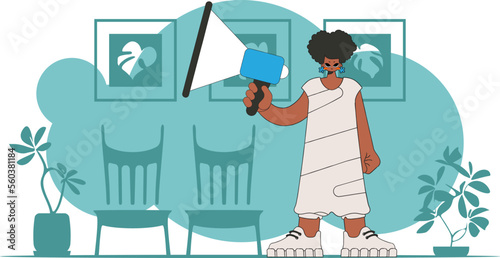 Subject Sphere of human resources. The guy is holding a megaphone.