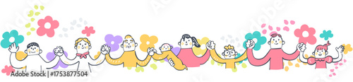 手つなぎ一列に並ぶ多様な人々 人と人のつながり・協力のイメージ