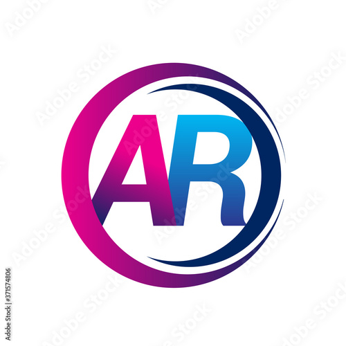 AR A R letter logo design. Initial letter AR linked circle uppercase monogram logo white color. AR logo, A R design. AR, A R