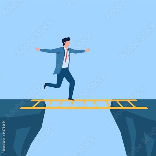 Vector illustration, concept of business motivation and ambition, business team overcomes obstacles and achieves success