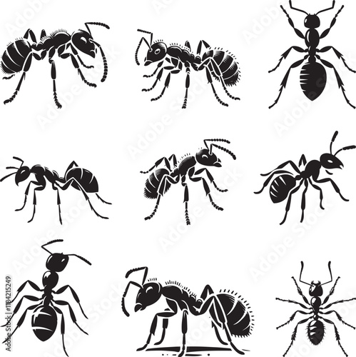 set of ant silhouette, isolated, vector