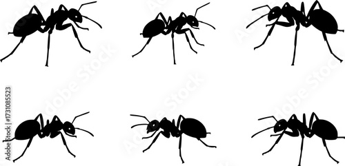 Vector isolated ant crawling silhouette set collection.
