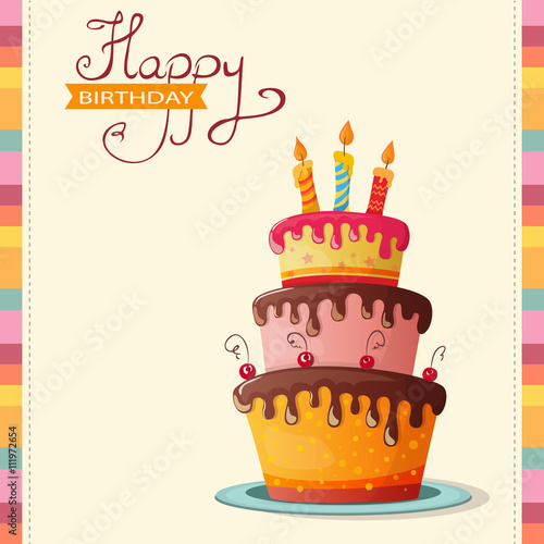 Happy Birthday celebration typography design with 3d birthday cake for greeting card, poster or banner. Vector illustration