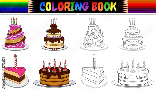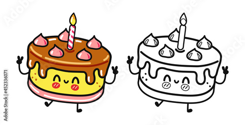 Cartoon set of sweet cake pieces with simple lines and no gradients in kawaii style. each image on separate layer