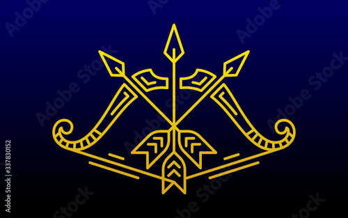 Archer lotus with line art style logo design template flat vector