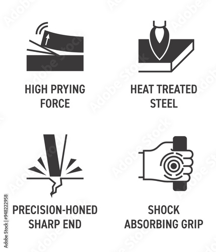 Thief hand wearing a black glove holds a hammer with a crowbar to pick a lock in monochrome. Simple minimalistic vector in black ink drawing on transparent background