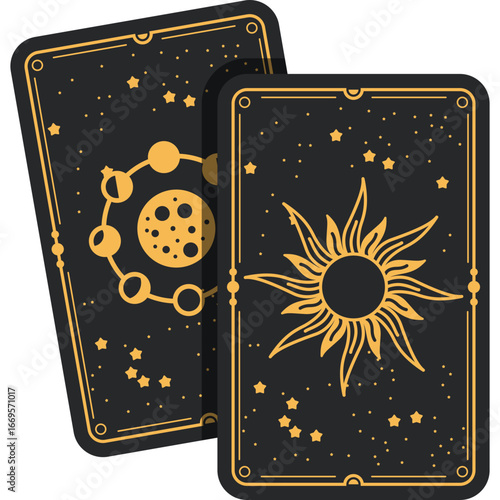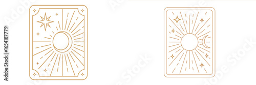 Tarot aesthetic divination cards. Asrological tarot design for oracle card covers. Vector illustration isolated in dark background