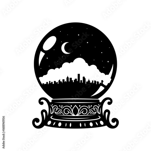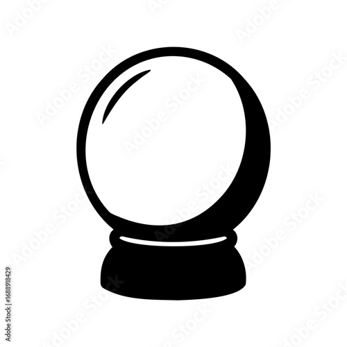 Silhouette of a black crystal ball on a stand. Halloween traditional design element, vector illustration.