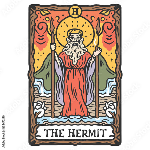 タロットカード占いのシンプルなカラーイラスト,星のカードを手に持っている