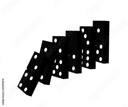 Scattered dominoes in one line on a white background. A simple illustration of falling knuckles. Lost board game concept. Domino principle in vector format. Stock vector image.