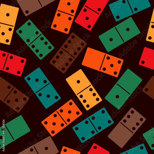 Vector abstract seamless pattern with a chess horse, dominoes and game cubes.