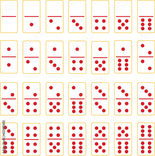 Domino set of 28 tiles. White pieces with black dots. Simple flat vector illustration