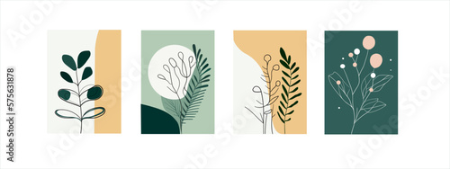 Abstract art nature floral  background vector. Modern shape line art. Boho foliage botanical leaves vector illustration on white background.