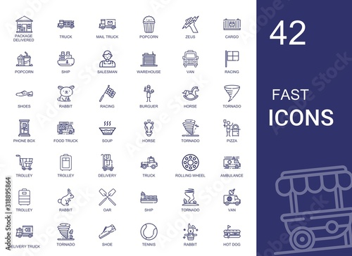 Fast food icons - hot dog, pizza slice, croissant and doughnut