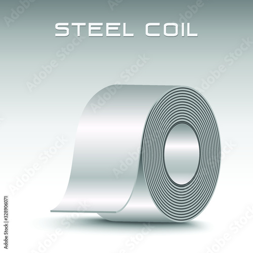 Roll steel, steel coil or sheet metal vector icon. Industrial product manufacturing or production from hot cold process with strength, hardness in factory. Raw materials for construction, machine part