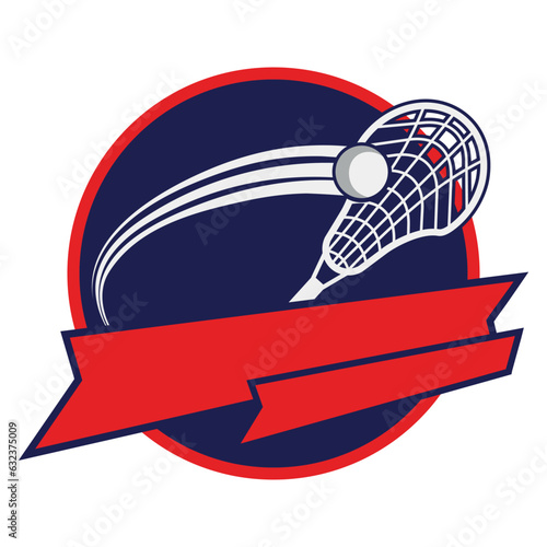 Lacrosse logo, icon, banner, label in blue and red, vector illustration, eps10, easy to edit
