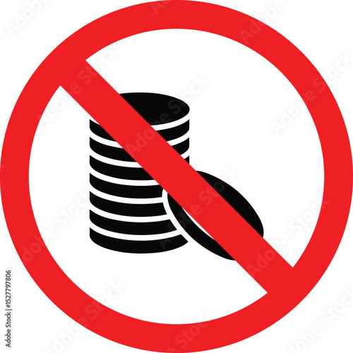No cash icon. Forbidden payment icon. No money vector sign. Prohibited cash payment vector icon. Warning, caution, attention, restriction casinocoins flat sign design. Do not pay dollar coin pictogram