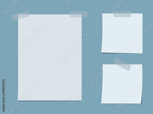 Blanc torn paper sheets with adhesive tapes set. Vector realistic design elements.