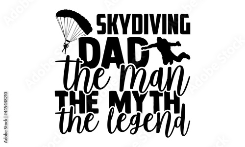 Skydiving Dad The Man The Myth The Legend - Skydiving t shirts design, Hand drawn lettering phrase isolated on white background, Calligraphy graphic design typography element, Hand written vector sign