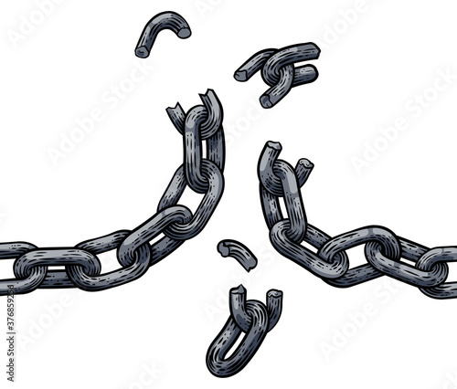 A symbolic illustration of a broken chain representing the breaking of shackles and the freedom achieved through the efforts of the Freedom Riders.. Vector illustration