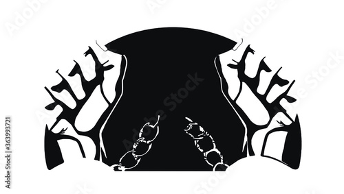 Hand in shackles broken chain. The concept of freedom and human rights. Vector graphic illustration black silhouette.