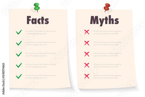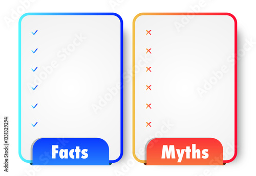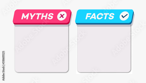 Facts and myths vector stickers template modern style isolated on white background. Fact checking or easy compare evidence 10 eps