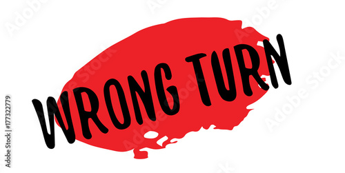 Wrong Turn rubber stamp. Grunge design with dust scratches. Effects can be easily removed for a clean, crisp look. Color is easily changed.