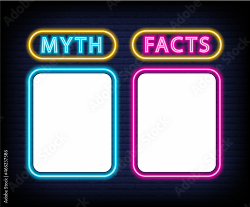 Facts vs myths neon style concept illustration. Fact-checking or easy compare evidence. Concept illustration Vector 10 eps