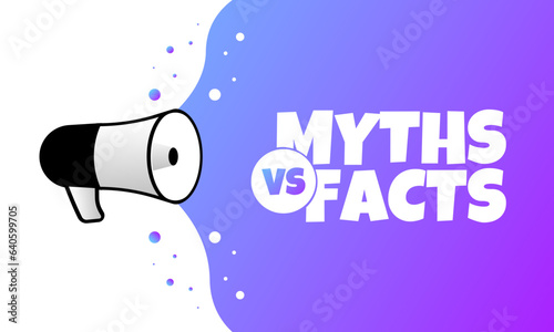 Megaphone report myths vs facts realistic style on half tone background. Vector illustration 10 eps