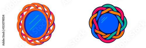 Two abstract starburst shapes one monochrome and the other colorful presented side by side