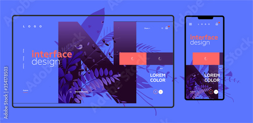 Web Design. Website template for monitor, laptop, tablet, phone. Elements for mobile and web applications. User Interface UI and User Experience UX content organization. landing page, banner.