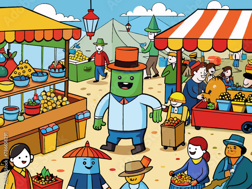 Vibrant market scene vector: a colorful depiction of everyday life.