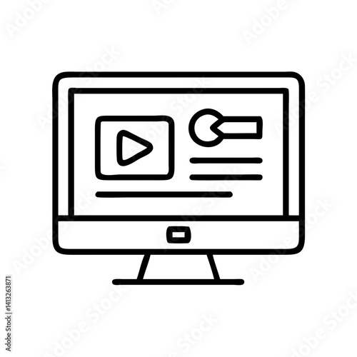 Video tutorial icon. Video conference, webinar icon. Video tutorials. Online video education, study and knowledge growth. Distance education and internet video services. Vector illustration