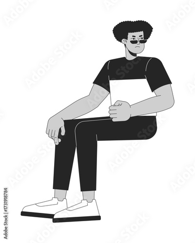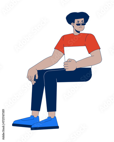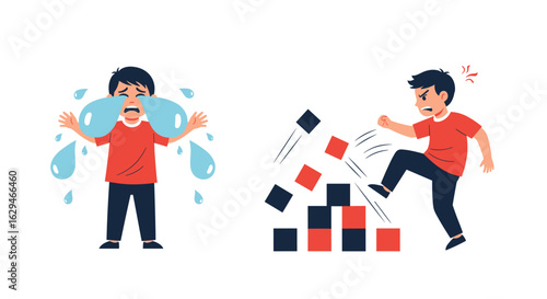 Young man unhappy squeezing head with hands. Emotions and body language concept. Stress, tension and migraine. Flat vector illustration isolated on white background