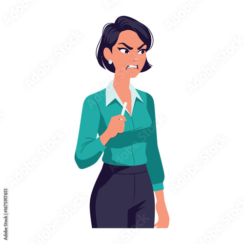 Termination of the contract, broke the agreement partners, business lady in shock. Flat 2D character. Concept for web design