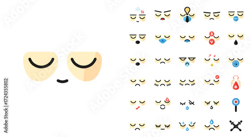 Man Facial Emotions Set. Male Character Radiates Joy Through the Smile, Furrow Brows, Angry, Fall in Love , Shocked