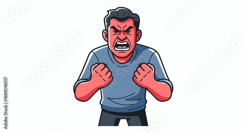 Angry emoji with clenched fists, steam ears, furious face, rage emoticon, frustration cartoon character, digital anger symbol, upset smiley icon, irritation expression