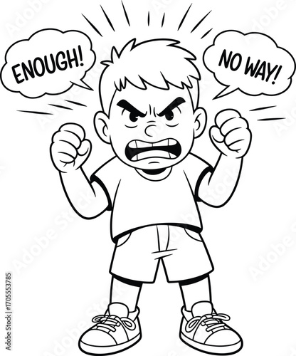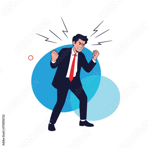 Angry Person Walking, Vector Cartoon Stick Figure Illustration