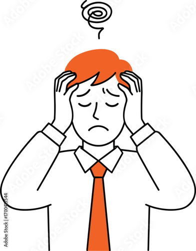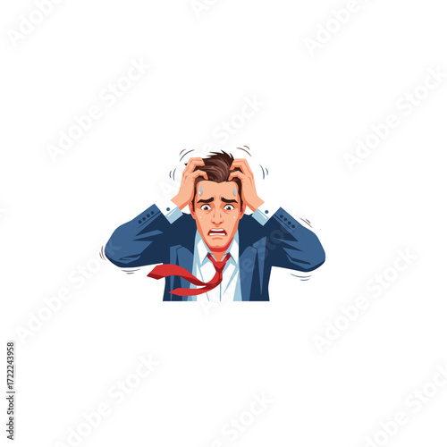 Businessman in despair holds his head in his hands. Generative ai fictional character vector illustration. Pop art comic book style imitation.