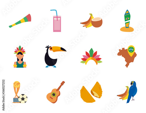 Vector illustration colorful background. World of Brasil pattern with modern and traditional elements. 2019 trend. Championship Conmeball Copa America 2019 in Brazil.