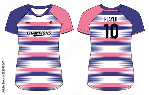 Women Sports Jersey t-shirt design flat sketch illustration with degrade line pattern suitable for girls and Ladies for Volleyball jersey, Football, Soccer and netball, Sport uniform kit for sports