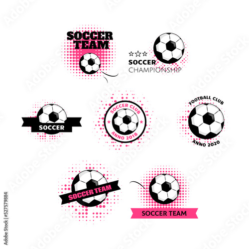 Womens and girls soccer football logo design with ball. Simple vector soccer label or emblem in pink colors. Girls soccer team.