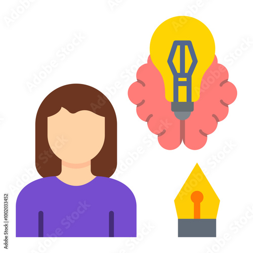 Illustration of a woman holding a pencil. Freedom of creativity. The process of writing. Creative girl. Flat style modern design for web page, social networks, poster, banner
