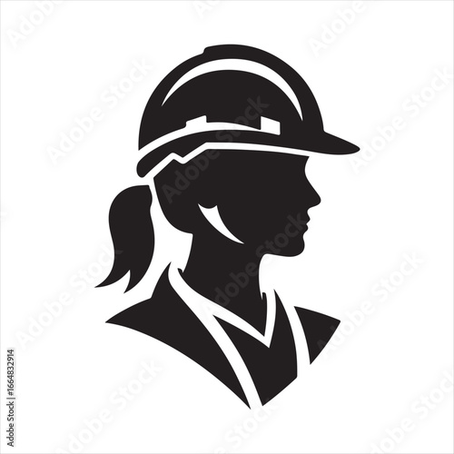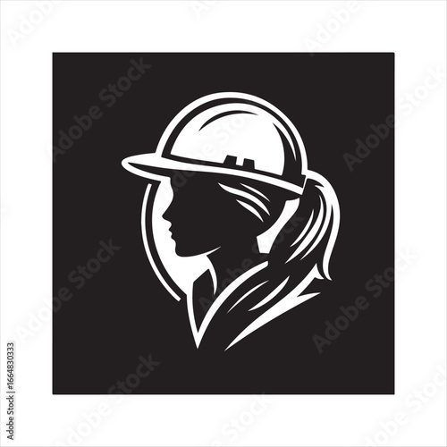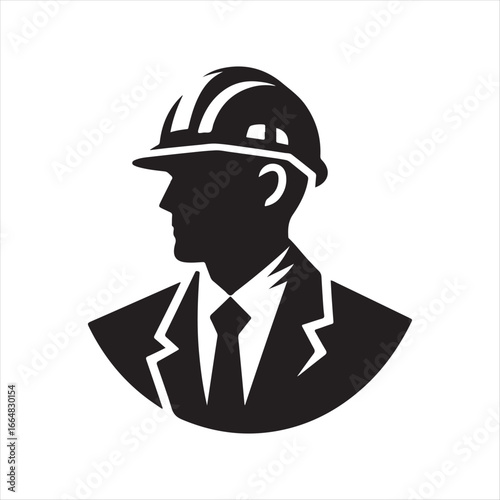 Construction worker with helmet vector silhouette outline logo design concept illustration