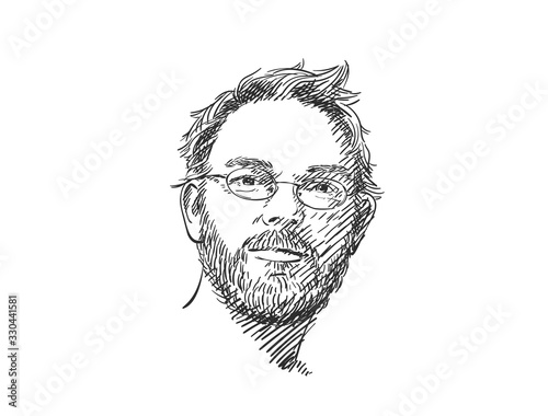 Line Art and Silhouette Male Face, Profile, Headshot Illustrations